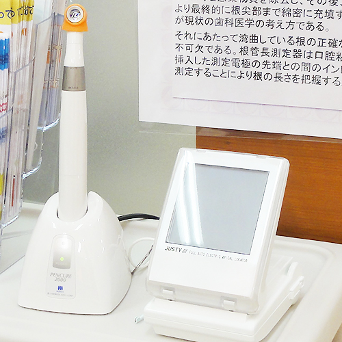 電極を使って、根の長さを正確に測定する機械です。