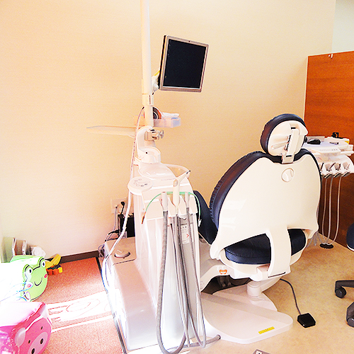 小さなお子さまとご一緒のお母さまは、診察台側のキッズスペース、ベビーチェアスペースにお子さまをお連れいただき、ご一緒に治療をお受けいただくことができます。
